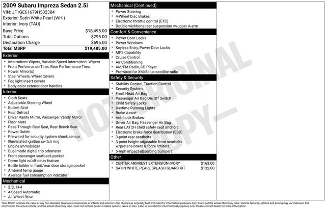 2009 Subaru Impreza 2.5i Satin White Pearl