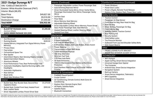 Clean CARFAX. Recent Arrival! 2021 Dodge Durango R/T White Knuckle Clearcoat